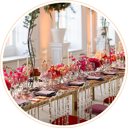 These hues come together to create an atmosphere brimming with femininity and romance. The décor is meticulously curated to evoke a sense of magic and allure, perfect for an unforgettable occasion.