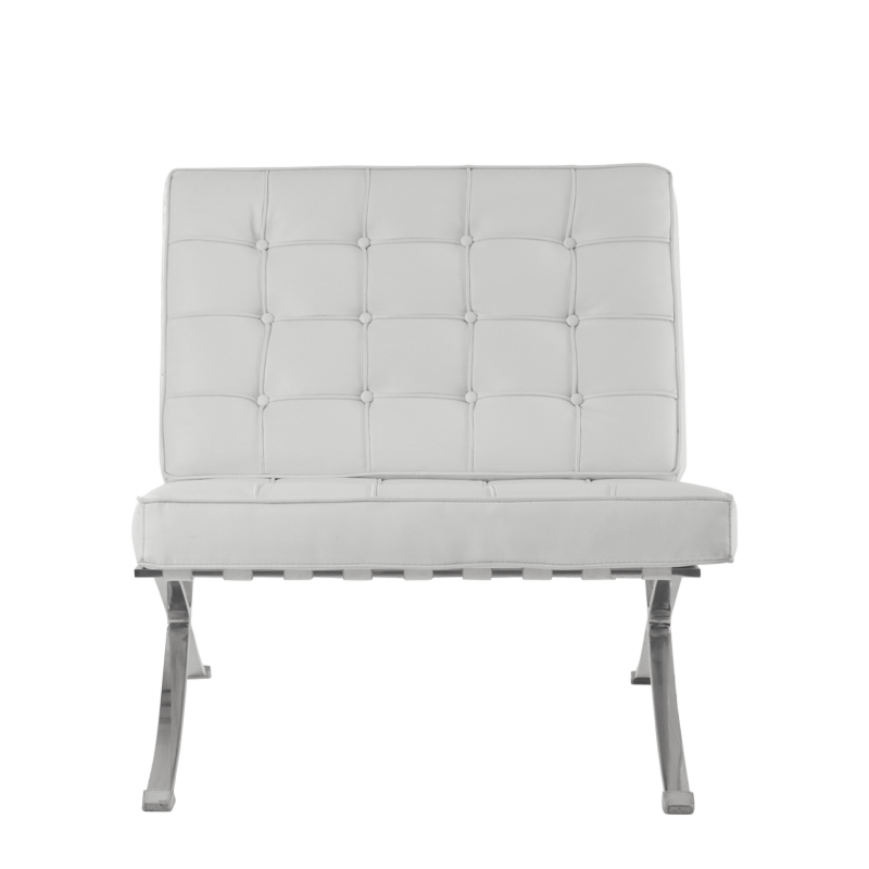 The smooth lines and minimalist appeal demonstrate the iconic timeless style of the designer Barcelona Chair. Designed by Ludwig Mies van der Rohe almost a centry ago the chair is a perfect example of Bauhaus Design. Upholstered in luxurious, quilted leather balancing on a strong stainless steal structure this chair is chic and reassuringly heavy, perfect for any lounge setting.