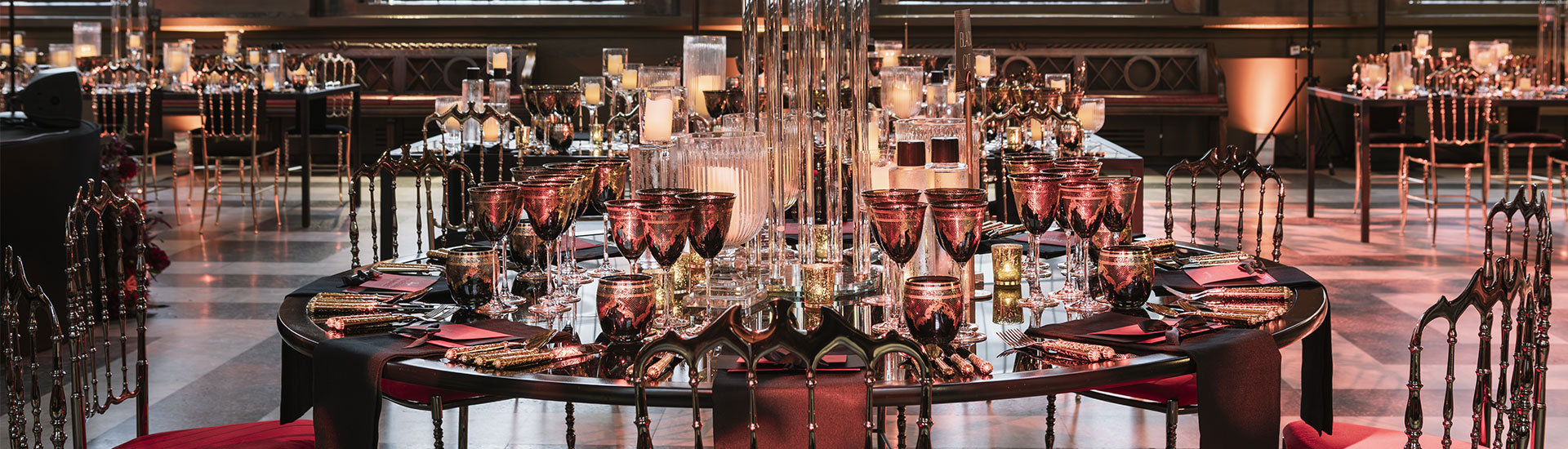 Table decor plays a central role in defining the aesthetic of your reception. We offer sophisticated centrepieces ranging from crystal candle holders and candelabras to contemporary glass vases and decorative bowls. Refined table runners, charger plates and ornamental accents complete the look, ensuring harmony between tableware and decorative styling.